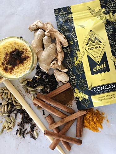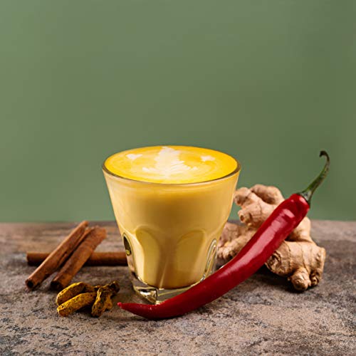 Das goldene, cremige, würzige, warme Getränk. Ein tägliches Ritual, das den Alltag vergessen lässt. Verwöhnen Sie sich mit Concan Kurkuma Chai mit Virgin Coconut Oil und milder Süße aus Bio-Kokosblütenzucker, für einen gesunden und ruhigen Moment während Ihres Tages. Golden Milk Latte ist ein reichhaltiges ayurvedisches Kurkuma-Getränk mit Bio-Kokosnussöl, schwarzem Pfeffer, Zimt, frischem Ingwer und erfrischenden und authentischen Masala Chai-Kräutern. Es ist nicht nur ein Leckerbissen, sondern auch ein bewährtes entzündungshemmendes und antioxidatives Mittel. Die angenehme Geschmacksexplosion der Inhaltsstoffe wirkt sich auch positiv auf Ihre Gesundheit aus. Der Ursprung der Goldenen Milch liegt in der tausendjährigen Tradition der ayurvedischen Medizin aus Indien. Das heiße Getränk wurde nicht nur als Delikatesse, sondern auch zur Verbesserung der Verdauung getrunken. Goldene Milch hat eine positive Wirkung auf Erkältungen und Grippe und hilft sogar bei Gelenkschmerzen und Leber- und Hautproblemen.Was macht das Rezept von Concan Golden Blend so einzigartig?Die Kombination aus Kurkuma, schwarzem Pfeffer und Kokosöl! Diese drei Inhaltsstoffe verbessern die positiven Auswirkungen auf die Gesundheit. Die Kombination trägt auch zur heilenden Wirkung des Rezeptes bei und sorgt für ein geschmackvolles und gesundes Ritual. Warum wird Gelbwurz in Concan verwendet? Wir haben fast nichts zu dem ursprünglichen ayurvedischen Rezept für unsere goldene Milch geändert. Die goldene Zutat in unserer einzigartigen Goldenen Mischung ist der Kurkuma-Extrakt. Wir haben den Extrakt bewusst neben gemahlenem Pulver ausgewählt. Der Kurkumaextrakt enthält bis zu zehnmal mehr der nützlichen Substanz, die Curcuminoid genannt wird, während das gemahlene Pulver erst lange genug gekocht werden muss, um die richtigen Substanzen zu extrahieren. Wir haben diesen Prozess für Sie erledigt, damit Sie ohne Probleme unsere Goldene Milch genießen können.